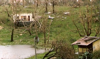 Nun gut...ueberlebt haben wir die Nacht. Und so werden wir den nächsten Flug nehmen zurück in die sichere Heimat. Ueberrascht stellen wir fest, dass wir höchstens zu Fuss zum Flughafen kämen. Der Verkehr ist total eingestellt. Die Strassen sind mit Palmenstämmen, Brettern und sonstigem Unrat zugeschüttet oder vom Wasser überschwemmt und ausserdem ist der Flugverkehr völlig eingestellt. Die Piste wäre ja schnell freigelegt, aber um die ganze Radaranlage wieder intakt zu kriegen, das dauert schon seine Zeit.